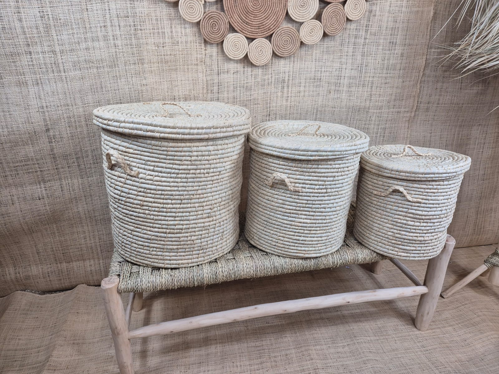 Disponible en 3 tailles, ce panier à linge tréssé en Raphia à couvercle plat est idéal pour votre décoration de maison, salle de bain ou encore de votre chambre.